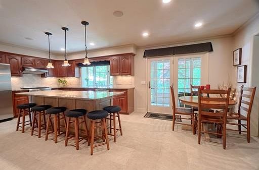 - Kit Dscrp: Pantry, Dining Area, Countertops - Stone/Granite/Solid, Cabinets - Upgraded, Flooring - Stone/Ceramic Tile, Kitchen Island, Stainless Steel Appliances, French Doors, Recessed Lighting, Wine Chiller, Gas Stove