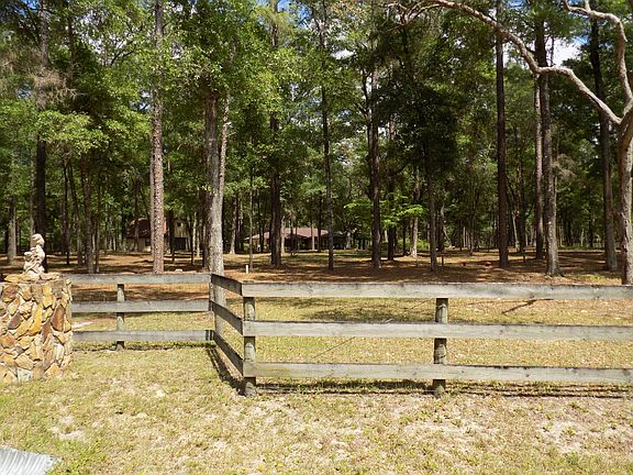 TRANQUIL 5.6 ACRES IN MEADOW WOOD FARMS. ENJOY YOUR VERY OWN PIECE OF MOTHER NATURE WITH THIS 3 BED 2 BATH 2334 SQUARE FOOT HOME. MATURE LIVE OAKS. FENCED PERIMETER, GATED ENTRY WITH LARGE PASTURE AREA. FENCE AREA AROUND BACK OF HOME WITH ADDITIONAL CHAIN LINK FENCE FOR PETS. REAL WOOD FLOORS THROUGHOUT THE HOME. WOOD BURNING ROCK FIREPLACE. LARGE LANDRY ROOM WITH SINK. DRESSING AREAS WITH MIRROR AND VANITY OUTSIDE BOTH BATHROOMS. 24 X 24 BLOCK 2 CAR DETACHED GARAGE WITH STORAGE OR POSSIBLE APARTMENT SPACE ABOVE. ADDITIONAL STORAGE SHED. ROOF REPLACED 2011. PATIO WITH GLASS WINDOWS. GREAT NEIGHBORHOOD TO BIKE, RUN AND RIDE YOUR HORSES. PROPERTY HAS A HAND PUMP WELL WHICH IS FUNCTIONAL. ROAD ASSESSMENT IS PAID. HOA IS VOLUNTARY.