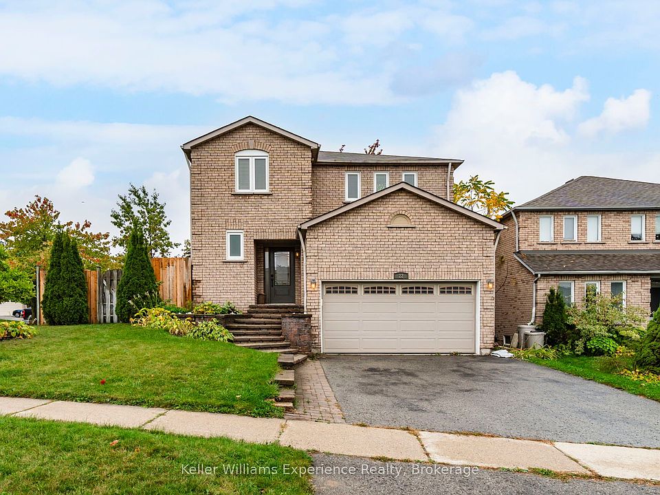 Welcome to 22 Cartwright Drive, a beautifully maintained two-storey family home in one of Barries north-end neighbourhoods! Offering approximately 1,900 sq. ft. of comfortable living space, this inviting 4-bedroom, 3-bath home features a bright and functional main floor layout with spacious living and dining areas, a convenient powder room, and a warm, welcoming atmosphere throughout. Upstairs, the primary suite impresses with a walk-in closet and private ensuite, complemented by three additional bedrooms and a full bath. Set on a corner lot with an attached two-car garage, the home includes central air, forced-air heating, and a cozy fireplace for year-round comfort. Perfectly located close to schools, parks, Georgian Mall, Georgian College and major commuter routes. This property offers the ideal blend of comfort, convenience, and timeless family appeal.