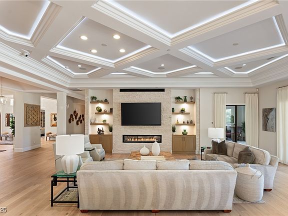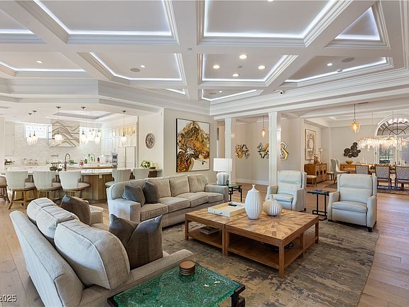 Stunning home in the prestigious Estates at Southern Highlands. Recently transformed through a two million dollar renovation, this single story with walk out basement and private casita defines modern luxury. The open floor plan showcases impeccable finishes, soaring ceilings, and seamless indoor outdoor living. A chef inspired kitchen opens to the great room and expansive patio, perfect for entertaining family and friends. The backyard is a true showpiece featuring an infinity edge pool, elevated spa, outdoor kitchen, and putting area with sweeping golf course views. Every surface reflects quality and design excellence with custom cabinetry, designer lighting, and imported stone. The primary suite offers a serene retreat with a spa style bath and access to the resort inspired yard. Five bedrooms plus a casita provide space for guests while maintaining privacy. This home embodies elegance, comfort, and the best of Las Vegas luxury living.
