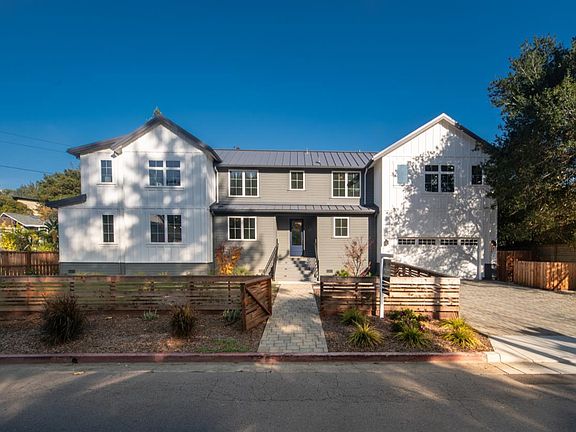 Thoughtfully designed by Polesky Perlstein Architects, this newly built 2,844 sq ft modern farmhouse sits on a sun drenched, flat, 1/4 acre corner lot in the heart of Kentfield. Bathed in natural light with beautiful outlooks & views, the open concept main level offers seamless indoor outdoor living. A spacious living room with fireplace flows to the dining area and chef's kitchen with large island, quartz counters, custom cabinetry, and premium appliances. Oversized doors open to an expansive deck ideal for alfresco dining. The main level also includes an office/5th bedroom with ensuite bath, an additional full bath, laundry room, and attached 2 car garage. Upstairs, the primary suite features vaulted ceilings, walk in closet, and spa inspired bath, plus three bedrooms, two full baths, and a generous family room that can alternatively be an independent ADU with full kitchen and laundry. The ADU or integrated living space offers flexibility for guest quarters, home office, customized family use, or rental income. Additional features include wide plank hardwood floors, 50 year steel roof and solar panels. Ideal central Marin location, with top-rated schools - stroll the Creekside path, explore nearby trails, and reach shops & restaurants within minutes.