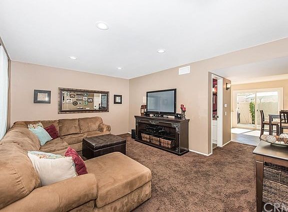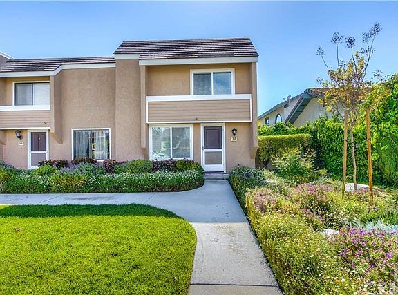 Pristinely maintained, premium END-UNIT, in a quiet, private "Inside the Loop" location. This 3-bedroom home has so many UPGRADES including smooth ceilings, custom lighting/recessed lighting throughout, plush carpeting, decorator paint colors, ceiling fan, central AC, upgraded tile, newer faucets, upgraded windows & sliding door, and much more. Master bedroom has mirrored closet-doors, and an ALCOVE currently being used as office space. With its GRANITE COUNTER-TOPS, stainless steel appliances & white cabinetry, you'll love whipping up meals in the light & bright kitchen. Gas stove. INTERIOR LAUNDRY ROOM off the kitchen with shelving for storage & cleaning goods. Sliding door from the kitchen opens onto a private WRAP-AROUND YARD, perfect for your year-round BBQs, dining, relaxing and a safe play area for little ones! There is a storage closet too for outdoor things. Just a few blocks from North Lake Beach Club Lagoon and Tennis Club, and within easy walking-distance to Stone Creek Elementary School. Woodbridge is one of the most popular Orange County neighborhoods, where homeowners get to enjoy the use of the top-notch schools and unbeatable recreational facilities like 22 pools, 2 lakes with beach clubs, tennis clubs and numerous parks. NO MELLO-ROOS.