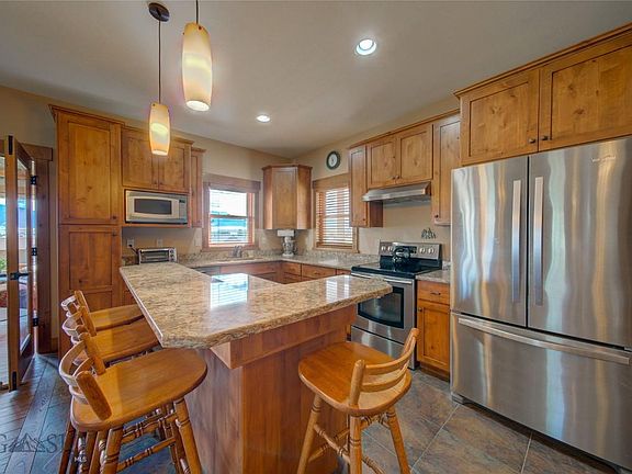 Turn-key custom finished home located in the desirable Valley Garden Golf Village. Enjoy easy and elegant living in this open and inviting floor plan with a main floor master suite, fireplace, open kitchen, sunroom with amazing views of the Madison Mountain Range that opens onto the deck great for BBQs and entertaining. Finishes in this home are top notch. Granite counter tops in kitchen, knotty alder cabinets and trim throughout. All bedrooms come with en-suite baths. The lower walkout level features one bedroom, family room, full wet bar and office area. Fully landscaped with mature trees, underground sprinklers and soakers. Don't miss out on this great home within walking distance to downtown Ennis, and minutes to the Madison River.