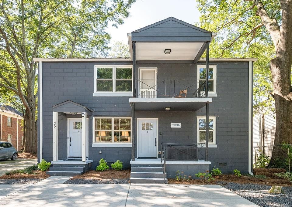 Welcome to this fully renovated two-story duplex in the heart of Hunter Hills, offering modern updates and flexible living or income opportunities. Each mirror-image unit features 2 bedrooms and 1 bath, with private outdoor spaces including an upstairs balcony and a downstairs covered porch. Interiors showcase refinished hardwood floors, updated kitchens with granite counters, stainless steel appliances, new cabinetry, and in-unit laundry. A stylish herringbone marble bath adds a touch of luxury. Recent upgrades include a new sewer line, an expanded driveway with 3 parking spaces, and refreshed landscaping designed for privacy and low upkeep. Separate gas and electric meters plus fiber optic internet provide added convenience. Just blocks from the Atlanta BeltLine and West Lake MARTA, and minutes from Downtown, Midtown, and Georgia Tech, the location offers easy access to parks, recreation, and major city attractions. This turn-key duplex is a rare find in one of Atlanta's fastest-growing neighborhoods.