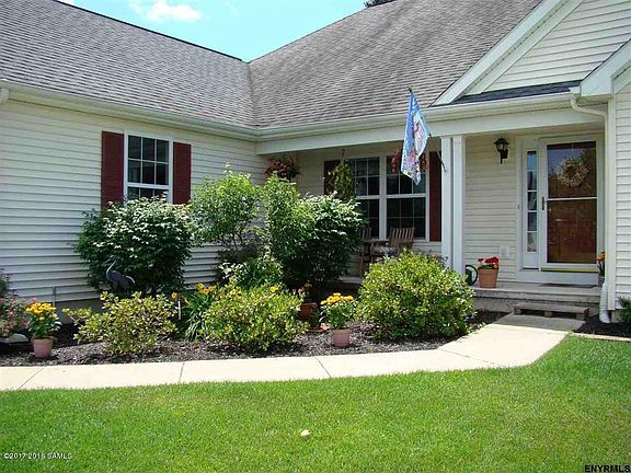 A stunning ranch home that has many additional upgrades & still looks brand-new!Bright & sunny,w/ vaulted ceiling,makes this open floorplan very desirable.HW floors throughout!Ceramic tile bathrooms w/ custom shades.Cozy living room w/ gas fireplace & blower.New granite countertops in the kitchen.Upgraded bump out in the eat in area w/ sliding glass door leading to a generous deck.Private yard backs up to forever wild,giving you privacy when taking a dip in the pool!Sprinkler system & gutters also added!