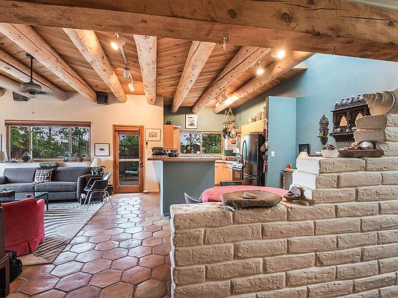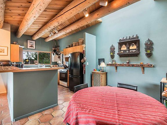 This is another lovely High Country Solar home built by Vahl Jackson. It provides a warmth of atmosphere with stlye and grace. This 2600 square foot house provides many different life styles for a family or a couple who need work spaces and simply private areas to retreat. The open living room and kitchen have mountain views and outdoor living spaces that are easily accessed from the living room. There are 3 bedrooms plus a den and an office. There is a lower level with bedroom, private bath, living area and work room which leads out to an enclosed sun room. This area makes a great guest suite and/or another private work space.