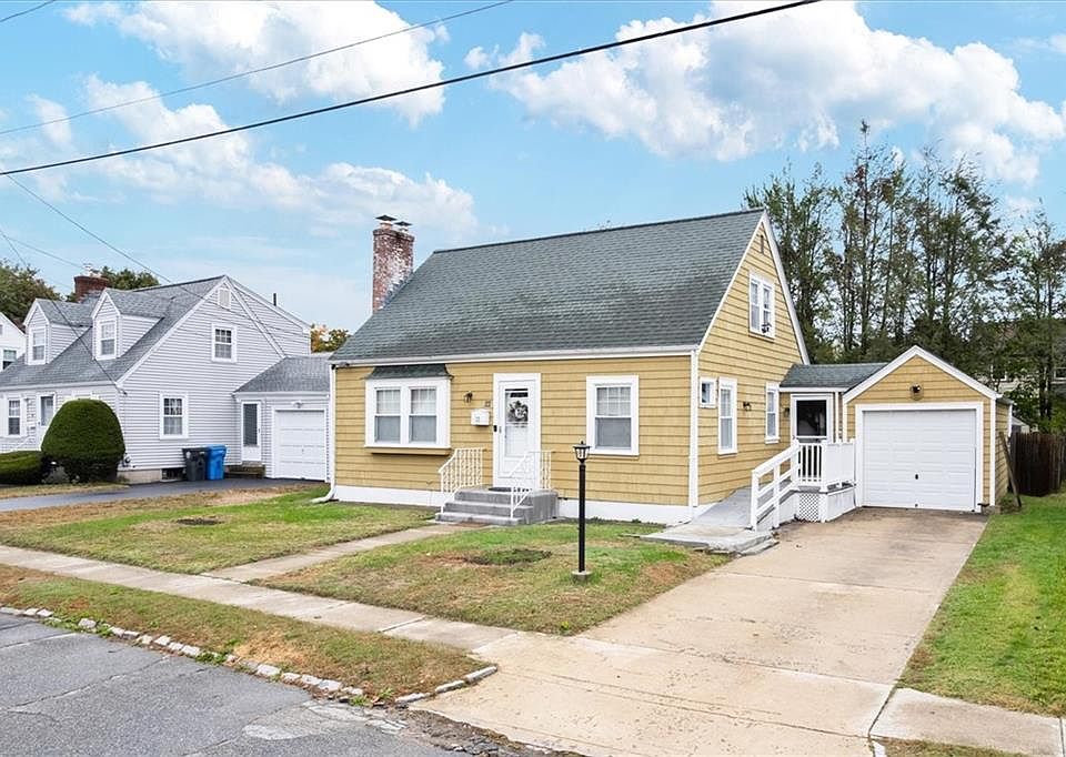 Charming 3-bed, 2-bath Cape! This home features hardwood floors, spacious living and dining areas, and a first-floor bedroom with full bath. Eat-in kitchen opens to a cozy 3-season breezeway/mudroom, perfect for additional storage or a convenient place to hang your jacket and shoes before you enter your home.. Upstairs offers two additional bedrooms and a full bath. Enjoy central A/C, gas heat, a fireplace, and an unfinished basement with laundry and storage. Fenced backyard, 1-car garage, and off-street parking. Conveniently located near schools, shopping, and highway access. Make your offer today! Don’t miss this one! Subject to seller finding suitable housing. "Buyer/Buyers agent to verify all measurements, square footage, and property details."