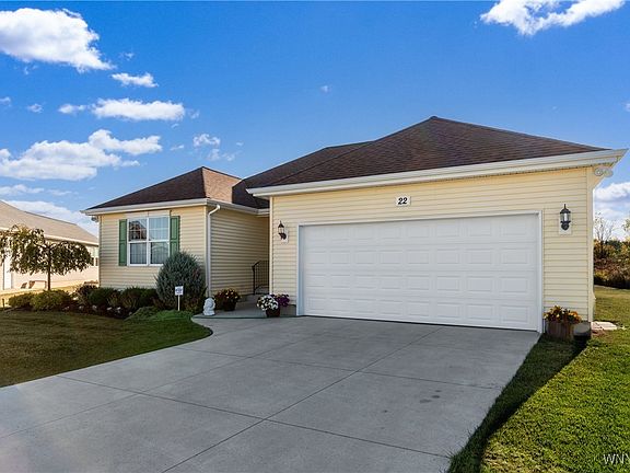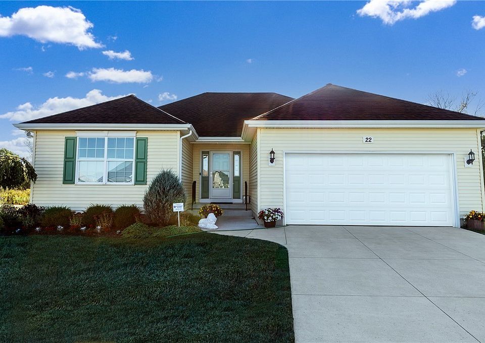Welcome to 22 Country Club Ct., This unique HOA Patio Home features a prime location overlooking 4 acres of HOA land with 2 ponds and a walking path around the adjoining pond. A well-cared-for 6 year old quality built Stickl ranch style home featuring 3 Bed Rooms (or 2 Bed Rooms + Den), 2 Full Bath’s, Laundry Rm, 2-car garage, double driveway, private rear patio and full finished basement with egress. Enjoy the view with floor to ceiling glass in the LR and DR under magnificent cathedral ceilings, exceptional detailing, ornate light fixtures, 5 stained-glass windows, a Genrac Home Generator, Central Alarm System and a fully equipped exercise area.
