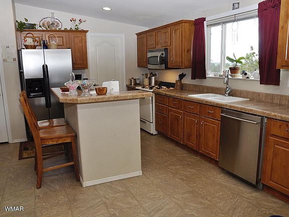 2356 sq ft, 3BD(plus den)/3BA, home on 7.78 acres. Outstanding views with good access. 3 car garage, on cement. Walls tape and textured, with block skirting and tied down (overkill on the foundation). New metal roof. Large pantry in the kitchen. New pellet stove in the living room. Large family room in addition to the living room. 3 window AC units. 1500 gal water holding tank to have water delivered to. Less than one mile to pavement on county maintained roads. In the Dutch Mountain area, about 20 min to Show Low. Listing includes parcel 107-12-841