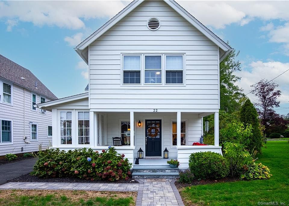 Spring/summer/fall/winter in Pine Orchard? Yes, please! Quiet dead end street with Long Island sound just a few short steps from house. Sit and watch the world go by from your own front porch. Walking path leads to private beach, house has deeded beach rights but NO flood insurance. Serene, peaceful views from your master bedroom every morning! House has been thoughtfully remodeled to take advantage of all space possible with an open floor plan. Many older touches help maintain the charm of this home while all the updating has been done for you. Front to back living room has a freestanding gas FP in the corner which heats up the whole first floor. Builtin bookcases, first floor laundry room with pantry, heated sunporch which could double as a sleeping porch with proper furnishings. Create memorable meals in your classic white kitchen with granite and stainless steel appliances. Flexible floor plan offers choice of eating area right outside of kitchen or in part of living room. Of course, dining al fresco on your patio in your backyard will be a must for as many months as the weather cooperates! Huge master bedroom with water views and two more bedrooms upstairs with a walkup attic for future expansion - amazing views from here if one were to take advantage of that! Central air, natural gas, city water and sewers, off street parking for 3 cars, shed. Great area to walk in, close to Pine Orchard Country Club, 90 miles from NYC! Deeded beach rights! One Year Home Warranty