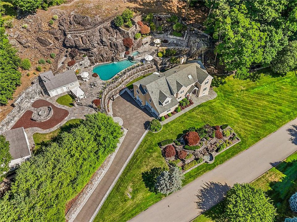 bathrooms within its expansive 4,500 square feet of living space, offering a luxurious retreat for its new owners. The property sits on a generous lot spanning almost 2 acres, providing ample space for outdoor enjoyment. The custom heated in-ground pool and spa with 4 waterfalls create an elegant setting for all gatherings. The pool house and poolside grill provide the perfect amenities for outdoor entertaining, while the detached gym room caters to any and all athletic aficionados. The heart of the home lies in the chef’s kitchen, boasting a granite island and countertops, accompanied by the finest quality stainless steel appliances, ensuring a culinary experience that is both functional and luxurious.