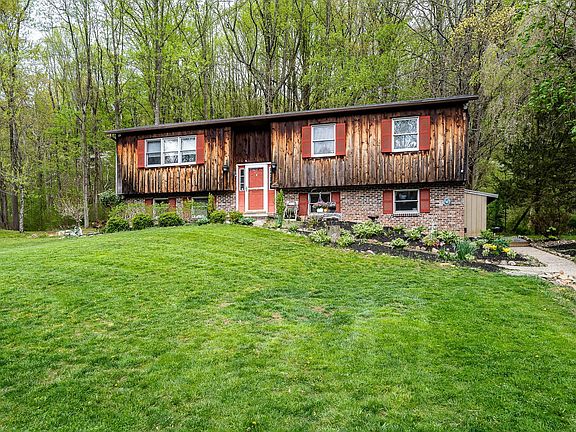 Welcome to this incredible piece of nature offering privacy, seclusion and serenity! The main level of living offers a family room with a beautiful view of the property from the large window. The eat-in kitchen is brightly updated with stainless steel appliances, granite countertop, a pantry, and double sink. The sliding glass door leads you to a 30’x16’ oversized deck for entertaining or just taking a moment relaxing with a cup of coffee and taking in the spectacular view. The primary bedroom has an ensuite bath with a stall shower and a beautiful barn door. There are also 2 nice-sized bedrooms with hardwood floors and a full hall bath. The lower level has a family room with Quadra-Fire wood burning fireplace insert, and custom built in cabinetry. great for entertaining. The fourth bedroom, full bath, laundry room and mudroom with side entry door completes the lower level. There is also a water softener and AO Smith Volex high efficiency hot water heat pump. New roof 2023! An oversized 3 car garage and a 20’x40’ barn. The lower level of the barn has running water, coal/wood stove, floor drains, custom walk-in cooler, finished hobby room. Tons of storage space, for 4 wheelers, mowers, and bikes. The second level of the barn has been totally renovated- game room, office space, gym the possibilities are endless. This area is heated and cooled by a mini split and has an exhaust fan. With almost all 3 acres of a usable yard, there is a 250’ commercial zip line, large tree fort, firepit, several paths and play areas in the woods. This property also has a pistol and rifle range to 100 yards with custom shooting bench. The property is secluded with woods, pasture, a small stream and wildlife. This property was once a horse farm and could accommodate horses. The seller includes a 1 -year Home Warranty. If you are looking for your little piece of serenity, you don’t want to miss this one!!! THIS ONE WILL NOT LAST!
