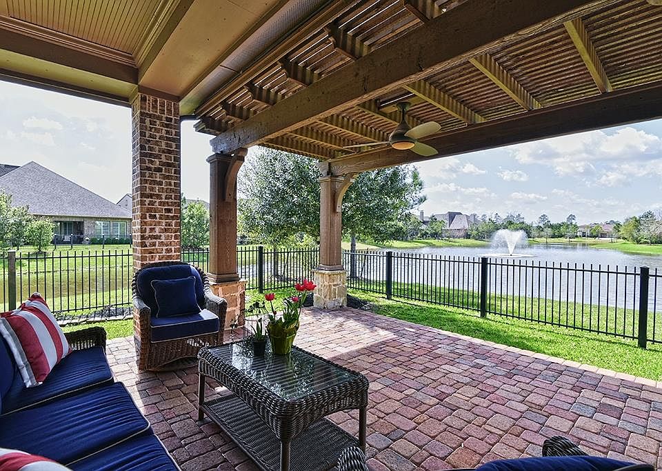 Stunning home on pond with water on 2 sides * so many windows for enjoying pond views * 4/4.5/3 * Casita with private bath * front courtyard w/fireplace * large rear covered porch w/fireplace & summer kitchen * plantation shutters * extensive wood floors * gorgeous updated kitchen with built-in fridge * study with built-ins * media room * gameroom w/kitchenette * large master with awesome closet * two bedrooms up (one w/private bath) * 3 car garage * and storage, storage, storage