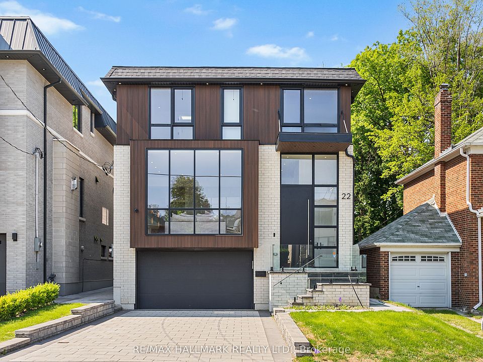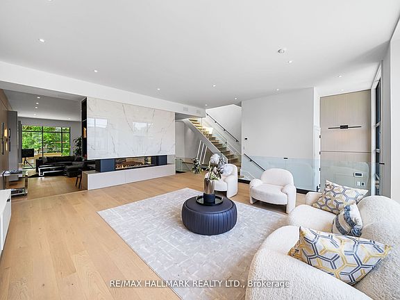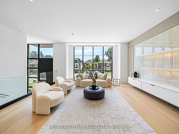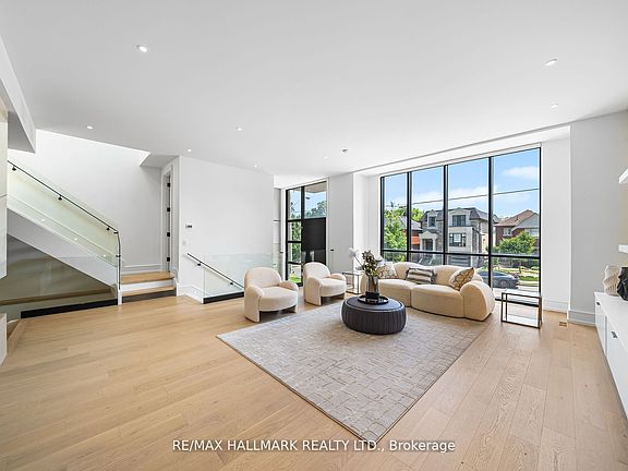 Welcome to 22 Divadale, located in the most desirable, quite, highly accessible and private pockets of North Leaside! This is by far one of the most uniquely designed homes in Leaside, featuring a layout that blends flow, function, and style across over 4,800 sqft of luxurious living space and checking every box. The main floor features soaring 12 foot ceilings, a chef inspired kitchen with an oversized island that seats eight, top of the line Miele & Wolfe appliances, with walkout to a large deck perfect for entertaining featuring exterior sound system, exterior lighting and gas line BBQ. White oak hardwood floors and stairs and sleek glass railings run throughout. Second floor features primary bedroom with stunning 7 piece ensuite, with heated floors and a large walk in closet with a skyslight. Three oversized bedrooms each with direct access to a bathroom and large closets. A rarely offered two floor basement with tons of features including a theatre room, nanny suite, 5 and 4 piece bathrooms, radiant heated flooring, wine display, built in speakers, separate entrance, large windows with walk out and 12 foot ceilings. A rare double car garage, hard to find in Leaside, is complemented by a full snow melt system/radiant floor heating covering the driveway, front porch, steps, side path, backyard, and basement walkout and landing. Additional features include a Control4 smart home system, electric blinds, designer lighting with dimmers, exterior lighting, a sprinkler system, gas fireplaces, skylights, and laundry on two levels. Just steps from Bayview Avenue and Eglinton Avenue. Located minutes from the top schools in Toronto including Northlea Elementary and Middle School, Bessborough Drive Elementary and Middle School, Park Lane Public School and Leaside High School.