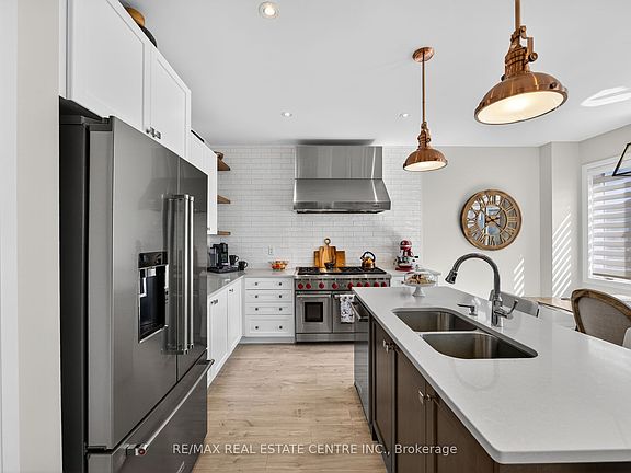Welcome to the largest model offered in this prime standalone neighbourhood, where sophisticated design meets square footage. This all brick 2 storey home delivers a layout fitting for family and friends, plus the potential of an undeveloped walkout basement for limitless possibilities. The main floor offers a private office, a flexible formal dining room, and a warm inviting living room with a gas fireplace that connects seamlessly to the heart of the home, the chefs dream kitchen. Perfect for entertaining, whether it is kids at the breakfast bar or family and friends in the eat in area, you are well equipped to prepare meals of any magnitude on your 6 burner double oven Wolf range. A sleek backsplash wraps around the kitchen above polished quartz counters and a walk in pantry keeps supplies organized. You will be prepared to impress not only with your culinary skills but also with the stunning ambiance this home presents. The designer foyer, where a slatted wood wall and ceiling paired with a sculptural light signal that you are stepping into something special. Nine foot ceilings and eight foot doors add elegance and grandeur, complemented by upgraded lighting, fixtures, window treatments, and all hard surface flooring throughout the main level. Upstairs, the 4 bedroom 4 bathroom layout is designed for comfort and privacy, with every bedroom featuring its own ensuite. The primary retreat is a showstopper, offering double door entry, a massive walk in closet, a Parisian inspired feature wall framing a king size bed, and a luxurious ensuite with a glass shower, soaker tub, double sinks, and a smart toilet. For added convenience, the primary suite also features automatic window shades for effortless control of light and privacy. Outside, enjoy a family friendly community with ponds, trails, schools, shops, and parks close by. This one feels right and offers undeniable value. With no sidewalk in front and walking trails behind, do not want to miss this opportunity.