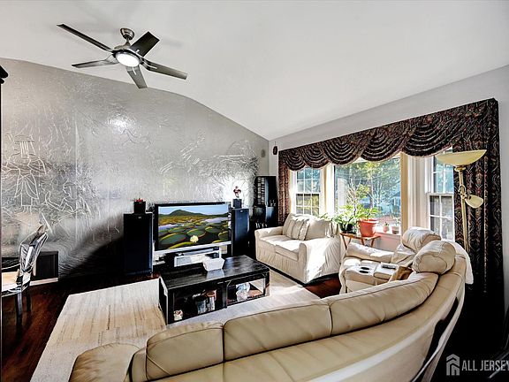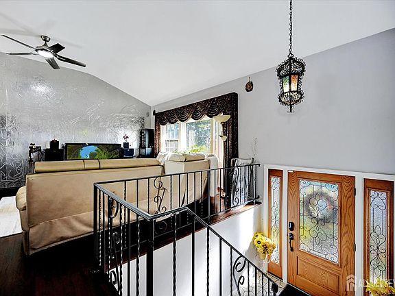 a beautifully manicured, meticulously maintained, and tastefully upgraded bi-level home located on a quiet crescent-shaped, tree-lined street in the highly sought-after Sayer Woods South section. Step inside to find vaulted ceilings, recessed lighting, gleaming hardwood and ceramic tile floors, and a sun-filled oversized primary suite with a vaulted pinewood ceiling, full bath with skylight, and a private loft featuring windows that flood the space with natural light. The home's 2024 updates include an expansive wraparound composite deck with paver steps, overlooking a resort-style backyard. Entertain with ease around the heated 36' x 18' inground pool with lights, surrounded by a stamped concrete patio and a private, fenced wooded backdrop that creates a peaceful retreat.The ground level offers a versatile family room or multi-generational living complete with a second kitchen, full bath, bedroom/office, and laundry.Additional highlights include:4 spacious bedrooms, 3 full baths, 2 kitchens,ADT central alarm system, 2-car garage. Re-Roof 2024 with new skylights. New Fibercon Deck completed June 2024. A-O Smith water heater 50 gallon 2024. 2023 New vinyl pool liner, pool lights, skimmers, electric control panel, gas heater, stamped concrete patio. 2023 ADT Home Security $70/mth. 2022 Pavers under deck and backyard PVC fence completed. Professionally landscaped grounds with front & back irrigation system. Enjoy the best of both worlds: a serene neighborhood setting with convenient access to NYC buses, Routes 9 & 18, NJ Transit, the Turnpike, and the Garden State Parkway. This home is move-in ready and designed for comfort, style, and entertaining.