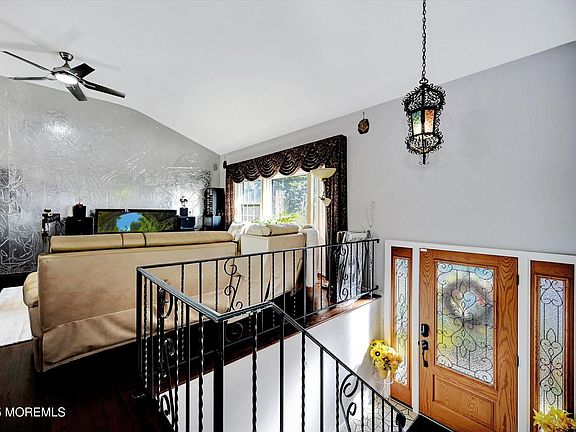 A beautifully manicured, meticulously maintained, and tastefully upgraded bi-level home located on a quiet crescent-shaped, tree-lined street in the highly sought-after Sayer Woods South section. Step inside to find vaulted ceilings, recessed lighting, gleaming hardwood and ceramic tile floors, and a sun-filled oversized primary suite with a vaulted pinewood ceiling, full bath with skylight, and a private loft featuring windows that flood the space with natural light. The home's 2024 updates include an expansive wraparound composite deck with paver steps, overlooking a resort-style backyard. Entertain with ease around the heated 36' x 18' inground pool with lights, surrounded by a stamped concrete patio and a private, fenced wooded backdrop that creates a peaceful ... retreat. The ground level offers a versatile family room or in-law suite, complete with a second kitchen, full bath, bedroom/office, and laundry - perfect for mother-daughter or multigenerational living.Additional highlights include:4 spacious bedrooms, 3 full baths, 2 kitchens,ADT central alarm system, 2-car garage. Re-Roof 2024 with new skylights. New Fibercon Deck completed June 2024. A-O Smith water heater 50 gallon 2024. 2023 New vinyl pool liner, pool lights, skimmers, electric control panel, gas heater, stamped concrete patio. 2023 ADT Home Security $70/mth. 2022 Pavers under deck and backyard White PVC fence completed. Professionally landscaped grounds with front & back irrigation system. Enjoy the best of both worlds: a serene neighborhood setting with convenient access to NYC buses, Routes 9 & 18, NJ Transit, the Turnpike, and the Garden State Parkway. This home is move-in ready and designed for comfort, style, and entertaining.