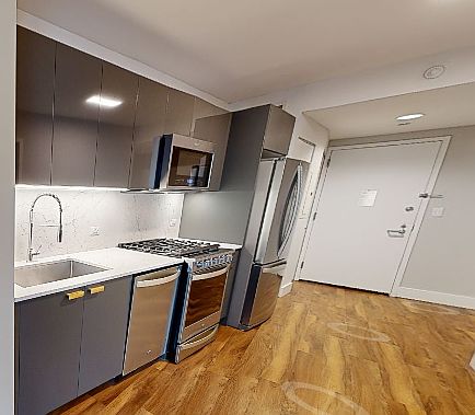 This pet-friendly, Bowery apartment home includes a stainless-steel kitchen upgraded SMART appliance, marble-style quartz countertops and backsplash, and grey cabinetry with undercabinet lighting. Apartment also features floor to ceiling windows with mecho roller shades, and hardwood floors throughout. *In-unit washer/dryer included!*