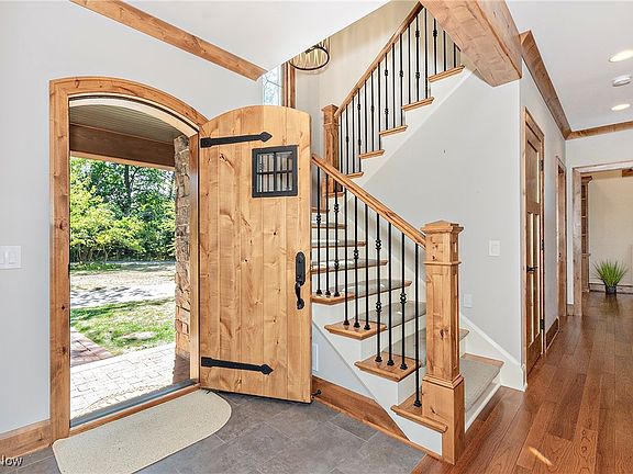 Nestled within the prestigious Congress Lake Club (CLC) community, this rare 1.15-acre property offers an extraordinary opportunity for luxury lakeside living. Located in Hartville (Lake Township), the home was custom-built in 2018 and designed by Peninsula Architects. The result combines modern design with timeless and elegant craftsmanship. This residence showcases high-quality finishes, focused on function, natural light and ample storage throughout. The open floor plan on the main level features beamed ceilings a great room with a statement stone hearth and fireplace. The generous space provides a dining area and gourmet kitchen made complete with a live edge table for additional counter space. The oversized windows + doors provide natural light at every turn. There is a custom and functional bar with an undercounter refrigerator, pantry area and laundry + mudroom on the main level. The first floor also features a bedroom with vaulted ceilings that is en suite to a full bathroom. A convenient elevator connects the main and second floors, while the attached garage with attic storage adds functionality. The owners suite, complete with a private balcony is an oasis. Custom craftsmanship, meticulous attention to detail, and ample storage create an environment ready for everyday enjoyment + effortless entertaining. The seamless blend of interior and exterior living spaces is rarely found and makes this home truly special. From sunrise to sunset, enjoy breathtaking Congress Lake views, occasionally accompanied by the iconic Goodyear Blimp fleet. Set within a private, gated section of the Congress Lake Club (CLC) this property offers both security and exclusivity. Membership to Congress Lake Club is required, granting access to its storied traditions and resort-style amenities including golf, tennis, swimming, and lakefront recreation—perfectly complementing this one-of-a-kind lifestyle.