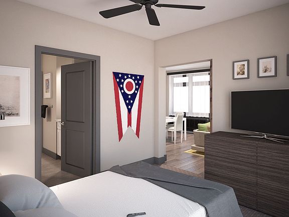 Welcome to The Prescott! A beautiful community in the heart of the Short North located just off of High Street, steps from all of the dining and shopping there is to offer. Apartment 207 is a spacious studio apartment with a built in room divider featuring stainless steel appliances, a kitchen island great for hosting, washer/dryer in-unit, a walk-in closet and more! Plus, the building features an attached garage!