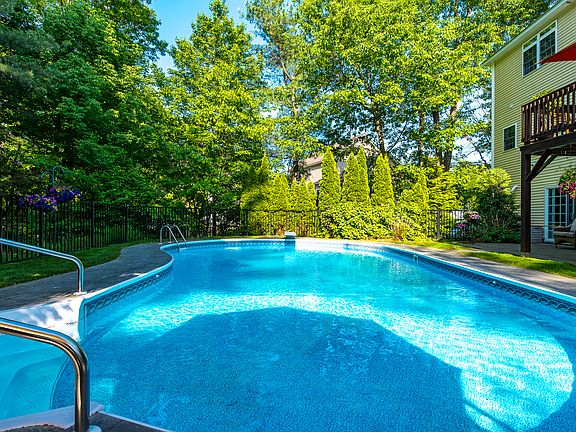 Beautiful colonial in gorgeous subdivision minutes from 93 and all amenities. This two story stunner has sunlight shinging at all times of the day. The open concept main floor allows an easy flow for entertaining or enjoying time together. The dining room flows into an big spacious kitchen with an oversized island, granite counters and a pantry. Beautiful hardwood throughout. Sliding glass doors lead out to a deck overlooking a fenced in oasis. A saltwater pool with gorgeous landscaping awaits. The masterbedroom upstairs has an onsuite bathroom with shower and awesome soaking jacuzzi tub. Three more bedrooms and a full bath complete the upstairs. Just when you think you have enough room, head down the finished stairs to a daylight finished bonus room with extra office space or bedroom should you desire. Access the large two car garage through this space or with the remote openers. Perfect commuter location. Come to the open house and fall in love!