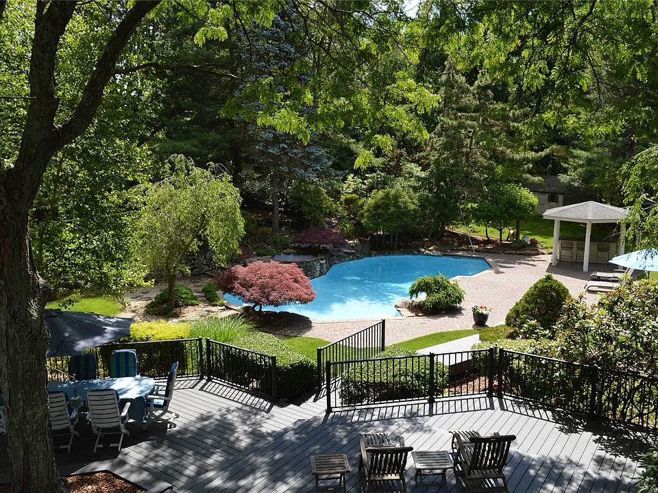 An entertainers paradise situated on 2 flat acres, a gunite pool with a waterfall and a wet bar surrounded by manicured grounds with specimen plantings. Brand new large Trex deck to host all your entertaining needs. Close to the L.I.R.R, highways, shopping and restaurants. The schools are the vaunted Cold Spring Harbor Schools. Great family neighborhood. The house features a 400 square foot kitchen, 4 bedrooms, steam shower, spiral staircase that leads to an open office. Lots of skylights. Full finished basement. All must be seen. Included in the beauty of Laurel Hollow Village is the private village beach with its mooring rights for your boat, kayaking, swimming, fishing or just relaxing to watch beautiful sunsets.