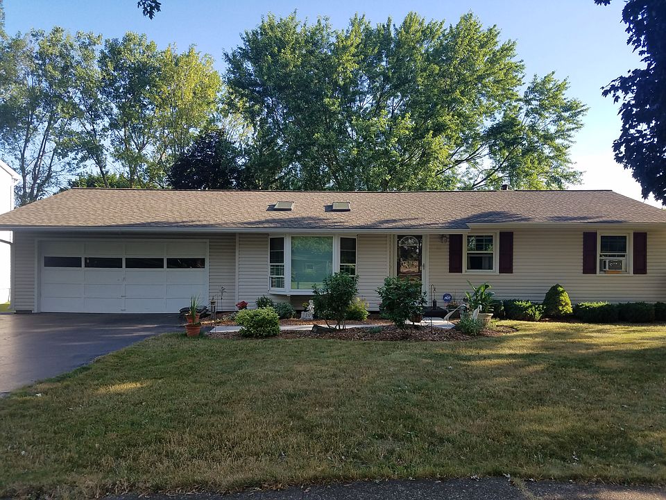 **Update** Central air installed end of July. Turnkey! Well maintained 3BR/2BA ranch home with finished basement and 2 car garage. Energy efficient and low maintenance with many upgrades. Quiet treelined neighborhood with desirable Spencerport school district. Hardwood floors throughout. All 6-panel white doors with brushed nickel hardware and new white trim. Vaulted ceiling in LR with skylights and large bay window. Stainless steel appliances, oak cabinets in the kitchen with new LED lighting and new garbage disposal. Complete remodel of main bath (2017) featuring granite countertop vanity, plank tile floor and fully tiled shower. Finished basement with glass block windows and full bath w/new floor (2018). High efficiency gas furnace with humidifier; new hot water tank (2018) and new panel box (2018). Fenced yard; 16' x 20' deck with composite decking, vinyl railings with solar lights (2016). 16' x 22' concrete patio with stone firepit. (2016). New front concrete walkway (2016). Exterior: New vinyl siding, double-hung windows, bay window, doors, slider, gutters, roof and Velux skylights installed 2010. Serious inquiries only! Prequalification preferred. To make an appointment, please contact Liz @ 585.953.4641. Phone calls only. (24 hr notice required) Brokers welcome @ 3% commission.