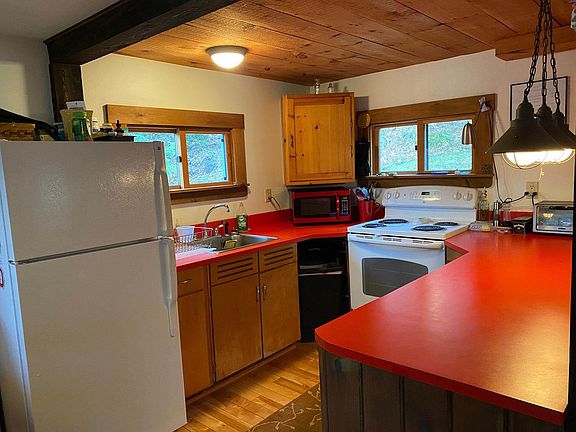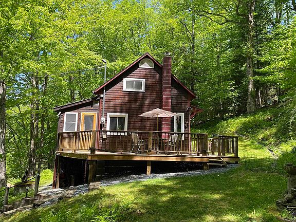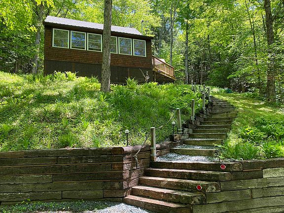 Are you looking for a 4-season get-a-way near Lake Whitingham (aka Harriman Reservoir)? This sweet hillside cottage is just 3 minutes to the shore at the Castle Hill picnic area where you can launch your boat, kayak or just sit and watch the sunset. Perhaps you'll spot a loon or an eagle while you're there! Located just 15 minutes to Mount Snow, this property is ideal for all of the year round recreation the valley has to offer - boating, swimming, skiing, tennis, golf, hiking and more. The first floor is an open concept living space plus a finished, heated porch. Upstairs you have an open bedroom, a full bath and a smaller room that has been used as a second bedroom. There are many stairs to get to the house but it is worth the climb! Great privacy, sunsets over the lake and winter views when the leaves are down. Don’t miss this opportunity to own a near lake property! Great news! Fiber Optic is here! Showings by appointment. One seller is a licensed Realtor.
