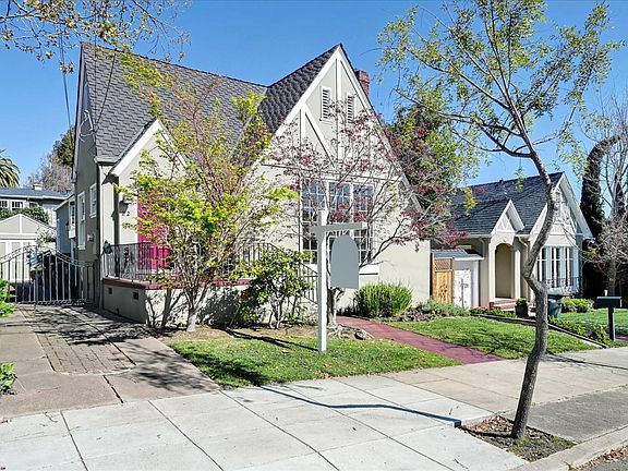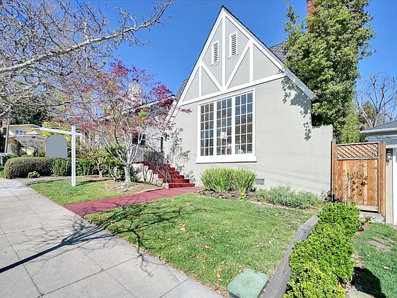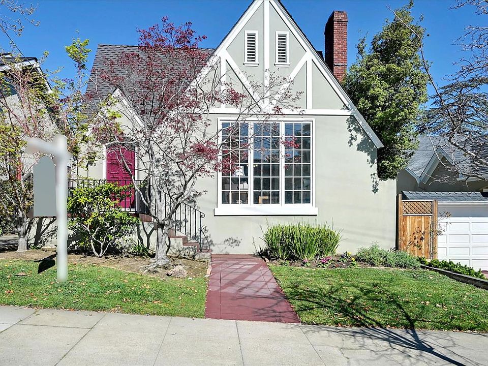 Welcome to this charming Tudor home in highly sought after San Mateo Park. This classic updated home features a formal entry, bright living room with a high vaulted ceiling, and a fireplace, formal dining room with custom wood shutters. The remodeled kitchen has a large bay window, granite countertops, marble backsplash, and custom built cabinets, alongside a bright breakfast nook with a built in lighted china cabinet. Two large bathrooms, hallway bathroom has a vintage claw foot tub, marble flooring and wainscoting. New ensuite bathroom has large Italian marble shower with European fixtures and double sink vanity. Two large bedrooms, beautiful oak floors and wood molding throughout house. Large attic with lots of potential. Separate unit in rear currently used as office, storage area in front and plumbing in ground for water and sewage. Walking distance to downtown San Mateo and Central Park, as well as downtown Burlingame, with countless dining, shopping and entertainment options