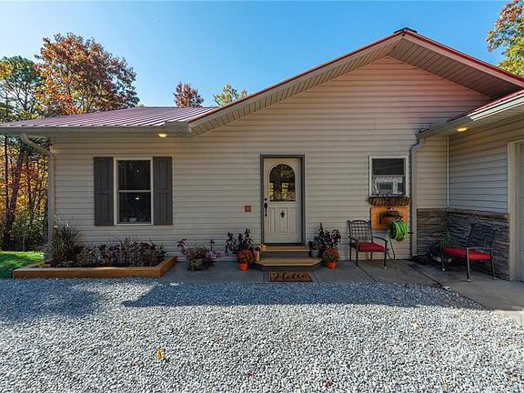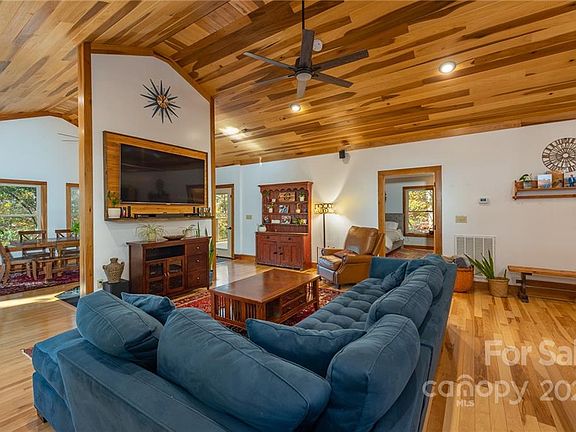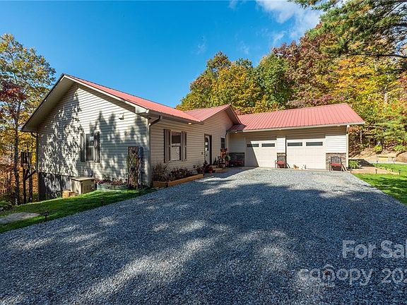 A scenic 12 minute drive from downtown Black Mountain and I40 is the perfect home for someone wanting the privacy of the mountains with easy access to all the conveniences of town. This custom built home welcomes you with vaulted ceilings, an open floor plan, and beautiful continuous hardwood flooring. The split bedroom plan has two bedrooms and an office on one side of the large living room and a spacious primary suite on the other. The primary has private access to a large deck, a double headed walk-in shower, two walk-in closets, and a garden tub. Kitchen appliances have all been updated in the last three years. Huge attached garage fits two large cars and a workshop! Sit out back around the fire-pit, garden in the new raised beds, then go clean up knowing the on-demand water heater will keep your shower hot. Ask your agent about items that seller is also offering like the dining room table set and the desk that fits just right in the office.