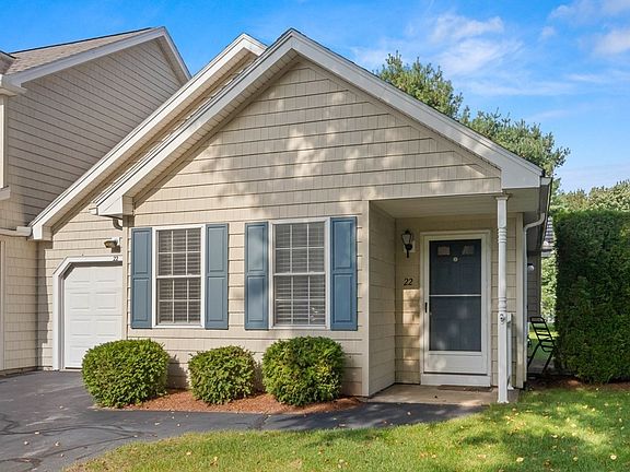 55+ and the living is wonderful! Well maintained garden single level living in desirable Eagles Landing at the Tewksbury Country Club. Modern, open concept floor plan with central air featuring a kitchen with breakfast bar, dining area, pantry and sliders to private patio. Cathedral ceilings throughout living room, dining room and both bedrooms! Enjoy the maintenance free lifestyle while enjoying the club room and the pool. Enjoy the 9 hole golf course that abuts Eagles Landing. Garage attached plus additional parking space with unit.