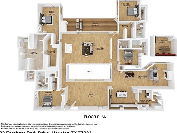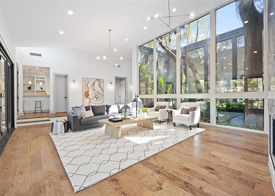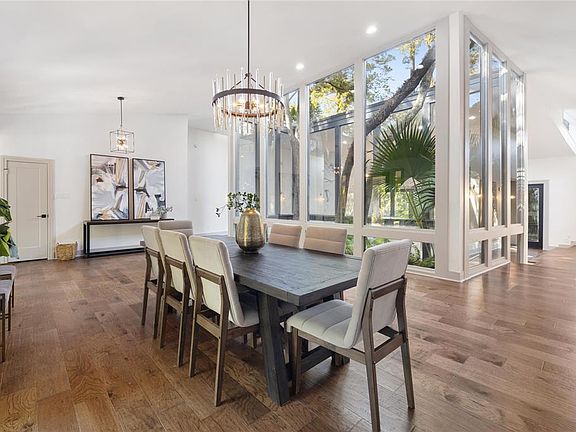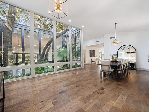 Experience this luxurious & light-filled nature retreat nestled behind the gates of Piney Point Village close to Kinkaid School and fully renovated by LA celebrity designer Julee Ireland. This gorgeous home boasts upgrades galore and floor-to-ceiling windows throughout that frame this lushly landscaped 42,000 sq. foot lot. The single-level open floor plan accommodates large-scale entertaining with a stackable sliding door overlooking the resort style pool & covered patio/fireplace area. An atrium in the center of the house bathes the interior in natural light and highlights the house's unique architectural features creating a warm environment. Professional chef's kitchen complete with SubZero/Wolf appliances and spacious center island with seating. Equipped with a stunning master spa-like bed/bath retreat, a private wine cellar & bar. The majestic man-made entry waterfall & stream runs under the house to the pool making the grounds of your new home feel like a vacation getaway.