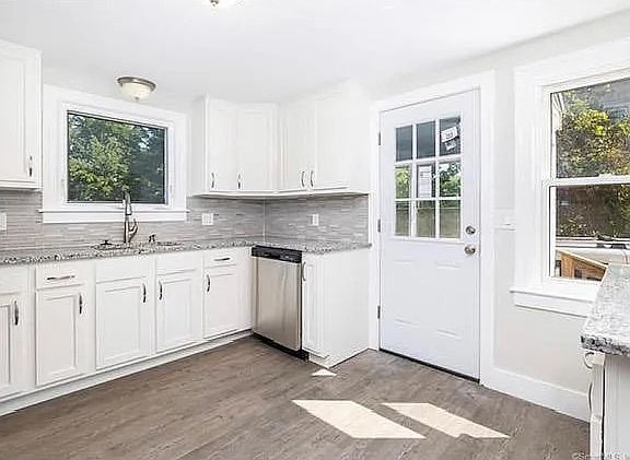 Move right in to this freshly remodeled cozy cape New kitchen with new stainless appliances, new shaker style white cabinets, new granite counters and new flooring There's a nice sized pantry closet too This bright and sunny kitchen is open to the dining room that is enhanced with chic stained hardwood flooring Spacious living room with bay window and there's a main floor bedroom too First floor is completed with a full bath. Second floor offers 2 large bedrooms with new carpeting, is freshly painted and has a second full bath. Nice flat yard and full unfinished basement Walking/biking distance to schools and parks. Agent is related to the owner