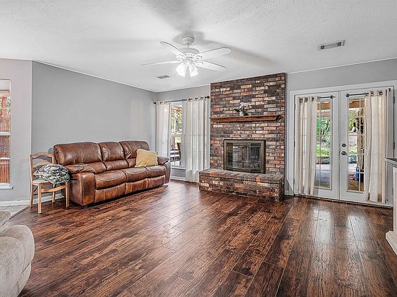 Luxurious walk-in showerWalk-in closetsUpdated kitchenLarge covered patioCozy wood-burning fireplaceTree-shaded lawnIncredible wraparound porch