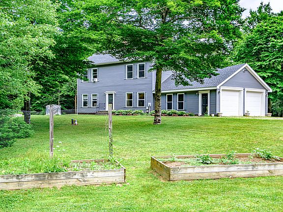 Don't miss out on this stunning and meticulously maintained home in Bowdoin, Maine! Situated on a private lot spanning over 4 acres, the property welcomes you with beautiful landscaping that offers endless opportunities to tailor to your personal taste. Enjoy the expansive yard, complete with raised garden beds, a spacious deck, a fire pit patio, and a relaxing hot tub. Upon entering, you're greeted by a large mudroom and convenient half bathroom, leading seamlessly into the spacious kitchen and adjoining dining room. Upstairs, discover a large office space, a full bathroom, two bedrooms, and a generously sized primary bedroom featuring its own bathroom and walk-in closet. The basement provides ample storage or the potential for additional finished living space. A detached two-car garage with a versatile second-floor area offers endless possibilities for customization. This property truly has it all—schedule a showing today before it's gone!