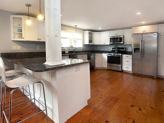 Fantastic, completely updated, historic South End property with everything you want. Open plan, double sided gas fireplace (kitch/LR), gorgeous kitchen, AC, closets and storage, wide plank wood floors, big rooms, nice fenced yard/patio/landscaping, great baths, recessed lighting, french doors, newer utilities, cost-saving solar panels and more! Just 5 houses from the water near parks and rail trail and a few blocks to a thriving downtown. Off-street parking for 3. Stand up attic and full basement, this house has it all! Open House on Oct 10 and showings are now available prior to then.