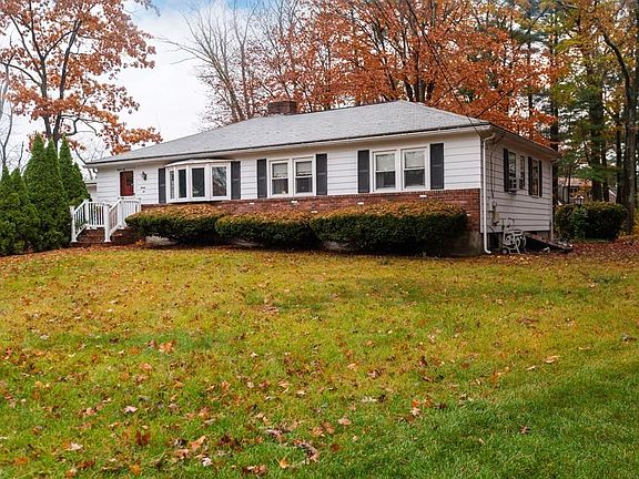 This spacious ranch, in a highly desirable neighborhood is situated on 1+ acre lot on a cul-de-sac with beautiful stone walls. You are greeted by a sun-soaked living room with new granite countertops, and open to the den which is accented by a wood burning fireplace. Hardwood floors continue down the hall to the master bedroom with a 3/4 en-suite. Two more bedrooms with full bathroom complete this level. Easy single floor living! Spacious 1100 sq. ft. lower level is currently used as a bonus room and laundry room. There is a also very large workshop with the separate entrance. Plenty of storage space. Wonderful commuters location, close to Rt. 93 and purple line.
