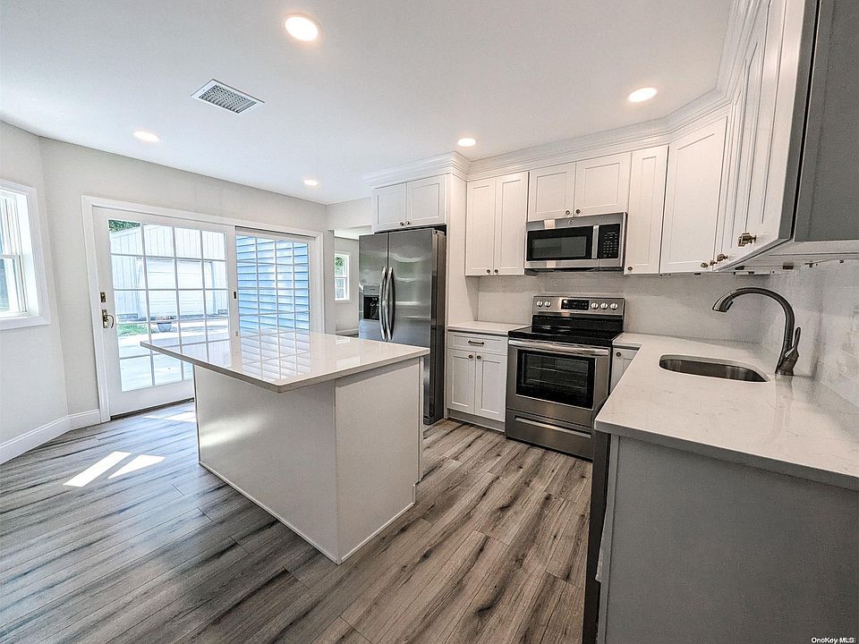 Welcome home to this beautifully renovated 3 (potentially 4) bedroom, 2 full bath colonial with a 2 car detached garage in Ridge! It features a spacious living room, formal dining room, gorgeous kitchen with quartz countertops and stainless steel appliances, a full bath and den/bedroom on the first floor. On the 2nd floor it has 3 ample sized bedrooms and another full bath. The huge 2 car detached garage provides ample storage space and the fully fenced yard is very private and secluded. Additional amenities include energy efficient brand new heating system, central air, and new water tank. With taxes at $10k with the STAR Credit, this is a home you do not want to miss!, Additional information: Appearance:Diamond+++,Interior Features:Lr/Dr