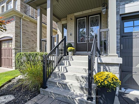 Welcome to The Orchard by Highmark Homes, a beautifully crafted four-bedroom, four-bathroom residence in one of Whitby's most desirable neighbourhoods. From the moment you arrive, the curb appeal is undeniable with a timeless brick and stone exterior, an asphalt driveway framed with tumbled stone pavers, new garage doors, and thoughtfully designed perennial gardens enhanced by maturing trees including columnar oak, spruce, and a Japanese maple. The fully fenced backyard is ideal for entertaining with a custom deck, pergola, and shed, while natural gas connections for both a barbecue and fire table make it the perfect space to gather year-round. An in-ground sprinkler system ensures the grounds are easy to maintain. Inside, the home showcases elegant details and functional design. The main floor features hardwood flooring throughout, extending up the hardwood staircase and across the upper hallway. Soaring nine-foot ceilings and extended eight-foot doors and doorways enhance the sense of space, while coffered ceilings in the living room and family room add architectural character. The kitchen is both stylish and practical, complete with quartz countertops, pantry, double sink with garburator, pot lights, pendant lighting, and a breakfast bar. The mudroom, with direct access to the garage, offers excellent storage and organization for busy households. Upstairs, the primary suite provides a private retreat with a large walk-in closet and a luxurious five-piece ensuite. The second bedroom includes its own four-piece ensuite, while the third and fourth bedrooms share a spacious five-piece Jack-and-Jill bath. Modern conveniences include electric vehicle readiness with a 240V outlet and breaker space for a level two charger. Located close to Highway 407 for easy commuting, and minutes to schools, parks, and shopping, this home offers the perfect blend of luxury, convenience, and community living. Detailed features room by room is attached.