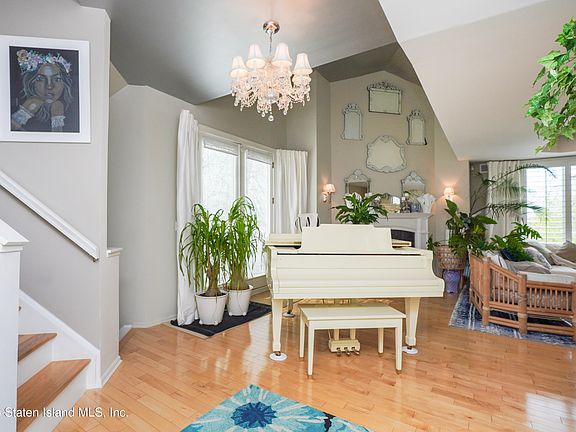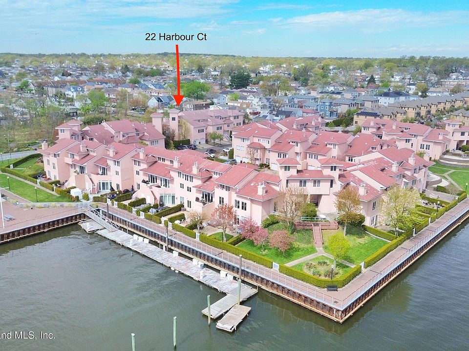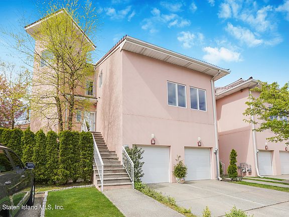 Welcome to one of the premier units at the luxurious Port Regalle waterfront community! This stunning unit has views of the Great Kills Harbor and Raritan Bay with 3 bedrooms, 2.5 bathrooms. This unit is spectacular.with hardwood floors throughout. The well appointed kitchen is outfitted with modern appliances. Formal dining room leading into a spacious living area with a gas fireplace and an entrance to a large private deck with a second deck below. Second floor boasts 3 large bedrooms and high ceilings. The spacious main bedroom has its own private balcony and walk in closet. The main bathroom is a spacious sink, shower with separate jacuzzi tub .The spacious hallway leads to two guest rooms, a third bathroom and laundry room. The third level has an incredibly sun-drenched sitting area with panoramic water views. The tower room is a magnificent peaceful space with harbor views! Storage in this home is not an issue. The newly renovated common area includes fire pits, Adirondack chairs, umbrella covered tables and chairs, private access with customized path to a private beach. This community is walking distance to childrens parks, marinas, restaurants, pharmacy and public transportation. HOA includes flood insurance, snow removal and landscaping. New marina coming to the community.