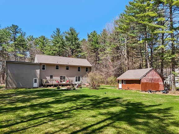 Welcome to this wonderfully maintained 3-bed, 2.5-bath home on over an acre of peaceful land, bordering conservation. Enjoy morning coffee on the sunny back deck or relax by the fire pit surrounded by mature trees, and a stone patio. A spacious storage barn with private water hookup is ideal for gardening or outdoor hobbies. Inside, the main level offers a family room, space for formal dining or a home office, and a bright living area that flows into a sun-filled eat-in kitchen with ample cabinets, a center island, and sliders right out to the backyard. Upstairs features two generous bedrooms, a full bath, and a large primary suite with walk-in closet and en suite. The roof is just two years young, and an unfinished bonus room above the two-car garage offers exciting expansion potential. Located in the award-winning Pentucket School District and minutes from local amenities, this home offers space, privacy, and comfort in a lovely setting. Showings begin this weekend!
