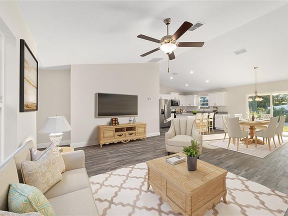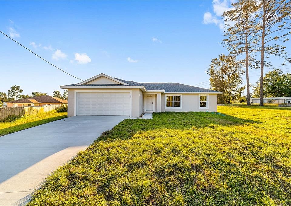 Home is complete! This gorgeous brand-new home located in SE Ocala is the ideal escape from the hustle and bustle of city life! With an open floor plan, pleasing neutral colors and vinyl plank flooring throughout, this 3-bedroom, 2-bathroom residence has all the charm and comfort any family could desire. Showcasing shaker style cabinets with granite counter tops in the kitchen, a washer/dryer hook up in the inside laundry for added convenience, plus a stainless-steel appliance package, this home is sure to impress. Covered back lanai. Enjoy your time in the neighborhood while nearby shopping, dining, medical centers and natural springs keep life exciting. Plus, its location near pristine rivers and springs allows for outdoor activities where adventure finds you! Photos of a model home not at this location. Color schemes may very.
