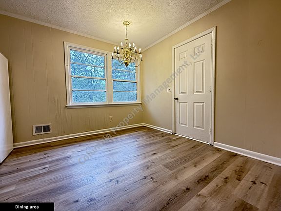 Three bedrooms, one bathroom, and living room. Eat-in kitchen with refrigerator and stove. Washer and dryer connections. New carpet and LVP flooring. Gas heat and window unit AC. Off-street parking. No pets. Tenants responsible for all utilities and yard maintenance.