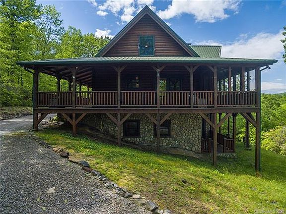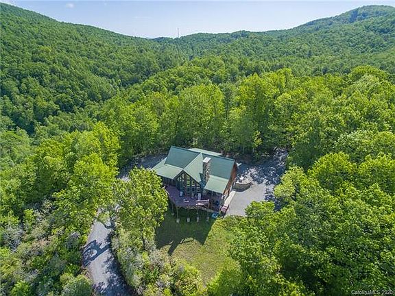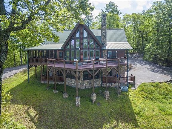 Real log cabin on nine and a half acres in private location with long range views of Little Pisgah and Bearwallow mountains and views all the way to Craggy Gardens and Mount Mitchell. Custom log home with vaulted ceilings, log steps, hardwood floors, large windows that bring in lots of natural light and a great solar envelope. Covered wrap around porch on the entrance side with a screened section and open deck on the view side. Loft game room and bonus room upstairs, master bedroom and bath on the main level with private access to the deck, lower level with 2 bedrooms, two full baths, office space, laundry, and garage, workshop space. Stone, wood burning fireplace, whole house generator. Separate wood shed in the rear. Can be sold fully furnished and stock with a few exceptions. Two lots totaling 9.42 acres. Very private location in Rock Creek Hills near Black Mountain and Lake Lure/Chimney Rock. See 3d virtual tour!!!