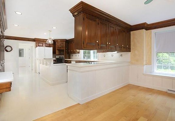 Gorgeous colonial sited on an expansive and lush 1.7 acre corner lot in desirable Chelmsford neighborhood, close to restaurants/shops in town center. This stunning home offers so many beautiful details, crown moldings, chair rails, recessed lighting, french doors, gleaming hardwood flooring throughout, and beautiful built ins. The main level features a stunning marble entryway, formal fire-placed living room, spacious family room, over-sized eat-in kitchen with formal dining room, half bath with laundry, and lovely spacious breezeway attaching 2 car heated garage. Additional detached 2 car garage as well. Upstairs you'll find the master suite with full bath, 3 additional good sized bedrooms, and additional full bath. The lower level is a beautiful newly finished space - perfect for family room or playroom, with sliders leading out to side yard. Completely freshly painted exterior, set back from road on very private lot. This home will not last long!