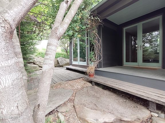Chic, Stylish home located in downtown Great Barrington, Walk To Everything! Sophisticated renovations, meticulously designed by once local artisan with BOSCH appliances, Italian stove, stackable washer / dryer, dishwasher. Enjoy Indoor/Outdoor living, with french doors in kitchen and breezeway leading to outdoor patio and gardens. Serene mountain views, established plantings, pear tree, perennials, and sun filled gardening spaces. Lots of natural light, southern facing porch off main floor living room opens to sleek and stylish kitchen, first floor bathroom and atrium office space encompass the first floor. 2 large Bedrooms upstairs, one with private Deck leading out to terraced garden. Home has many unique spaces to enjoy! This charming Berkshire getaway is located in town on side street