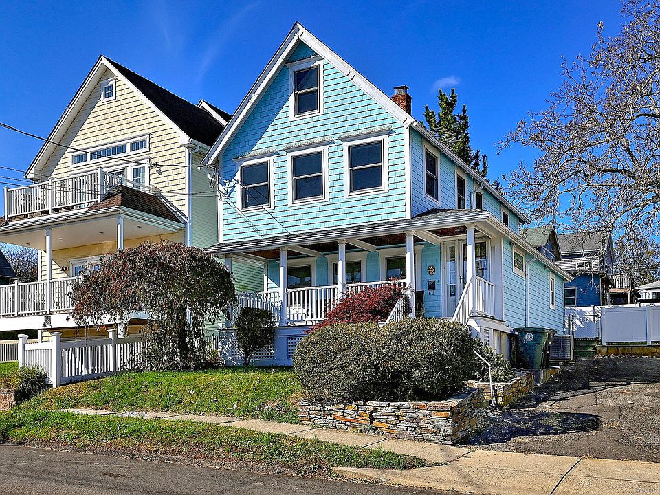 Seaside serenity and storybook charm in this one-of-a-kind tideline treasure, perfectly perched in one of Milford's most sought-after beachside enclaves. This 1,608-square-foot haven harmonizes comfort, character, and captivating coastal panoramas from nearly every angle. Sip your morning coffee or sunset cocktail from the covered front porch, where sea breezes, salt air, and seagull song set the tone for tranquil living. Inside, an open-concept living room invites you to unwind by the handsome mantled, stone fireplace with its Vermont Castings stove insert, gleaming hardwood floors, and wide water views that make every day feel like vacation. The formal dining room sits open to the living area and flows through French doors to the bright eat-in kitchen, complete with a breakfast bar, pantry, and door to the rear deck overlooking the fenced yard with a powered shed for your workshop endeavors and beach gear storage. Upstairs, the primary bedroom promises peaceful mornings with hardwood floors and ocean vistas. A walk-up attic offers boundless potential with breathtaking horizon views, while central air, a brand-new furnace, and main-level laundry make everyday living blissfully easy. With lively seasonal community events and the beach, restaurants, train, and shops all nearby, this coastal jewel affords a rare recipe of location, lifestyle, and lasting allure.