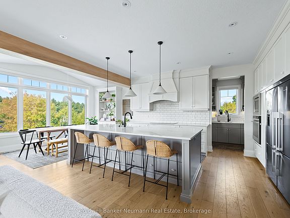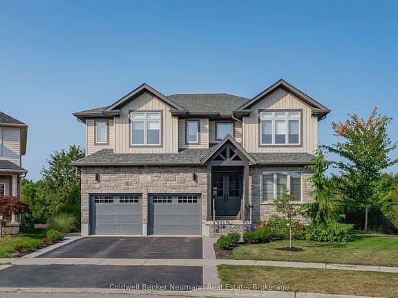 Situated on an expansive pie-shaped lot surrounded by nature, this stunning residence is thoughtfully crafted with every detail in mind. This isnt a home; its a designer resort perfect for single or multi-generational families who want to live a full life of activities and luxury. The backyard oasis features a luxurious free-form saltwater pool complete with a natural jump rock and cascading waterfall, an extensive stamped concrete patio, a grand timber-framed cabana, and a 6-person hot tub, all surrounded by professionally landscaped gardens. A stone staircase leads to a sunken interlock patio, creating multiple spaces for entertaining, alongside an activity lawn for games and sports. The bright, modern kitchen offers west-facing sunset views from the island, a functional and stylish butlers pantry, top-of-the-line appliances, and flows to the living room and balcony, creating a warm atmosphere to spend hours with your family. High ceilings and oversized windows maximize the space and light, delivering peaceful comfort as you enjoy each room. The primary bedroom feels like a five-star hotel suite with a sitting area, forest views, and an ensuite of serenity. The fully finished lower level provides secondary accommodations ideal for your family or guests, and a large space offering versatility for additional living space, or a gym/games room. With a theatre room, walkout to the stunning backyard and an additional large bedroom with ensuite, the lower level is an entertainment space friends and family will want to enjoy. Beyond your backyard is an extensive trail network for hiking, dog walking, cross country skiing or world-class mountain biking, with the entrance directly beside your home. Downtown Guelph is a 15 minute ride via bike trail, with Riverside Park and Guelph Lake a short walk away. A showcase of luxury, nature and design, this calibre of home promises to impress at every turn and is a rare turnkey offering in the Guelph luxury market.