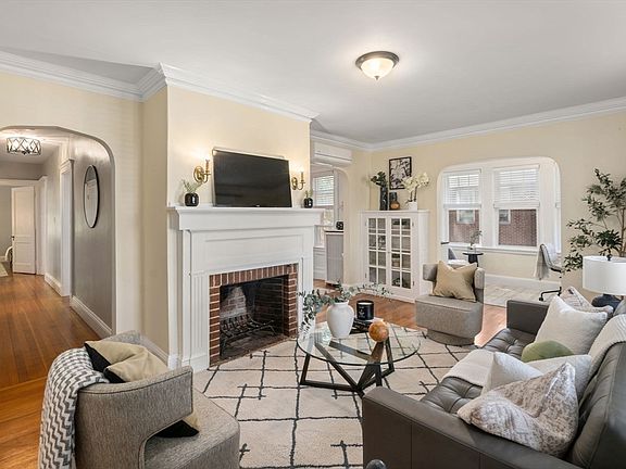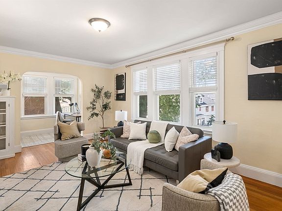 Price adjustment! Beautiful, well maintained, first floor, 6 room, 2 bedroom, 1.5 bath room condo located on the first floor of a brick two family home in desirable Newtonville neighborhood. Step into a wonderful fireplaced living room that flows into a spacious sunroom that could be used as a third bedroom or home office. There is a sun filled formal dining room, a well appointed kitchen with stainless steel appliances and direct access to laundry and large back yard. Two generous sized bedrooms with good size closets, and one and a half baths complete this fantastic home. Other amenities include newer mini splits for AC and heat, newer roof, private storage area in basement and garage parking. A short walk to Cabot School, Cabot park, commuter train, express bus, Newtonville and Newton Corner. This is an amazing one of a kind condo. A must see!
