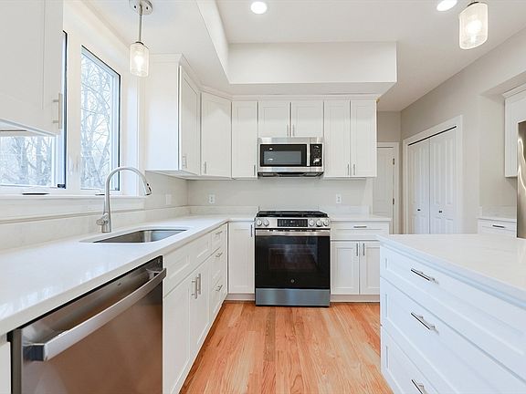 - Features: Flooring - Hardwood, Countertops - Stone/Granite/Solid, Countertops - Upgraded, Kitchen Island, Recessed Lighting, Stainless Steel Appliances, Gas Stove, Lighting - Pendant